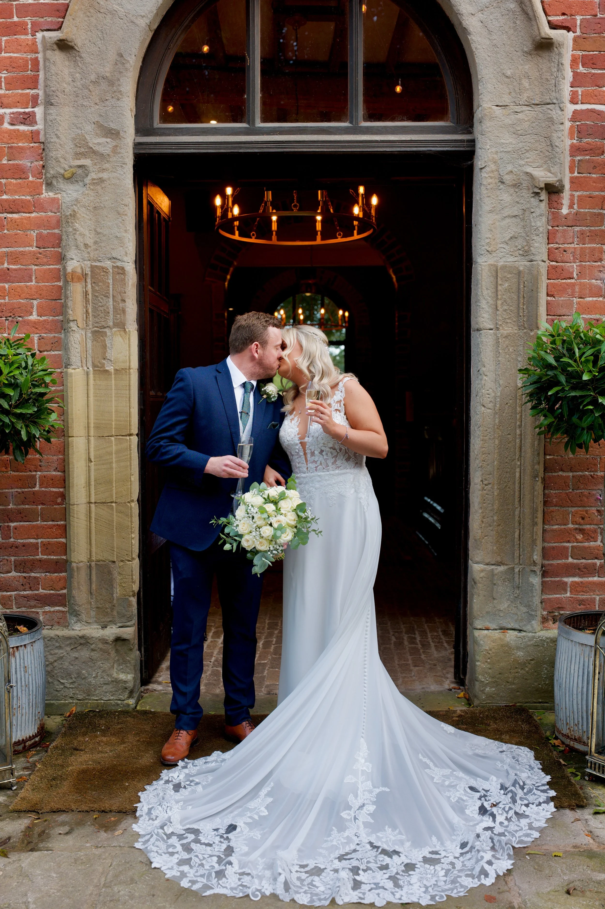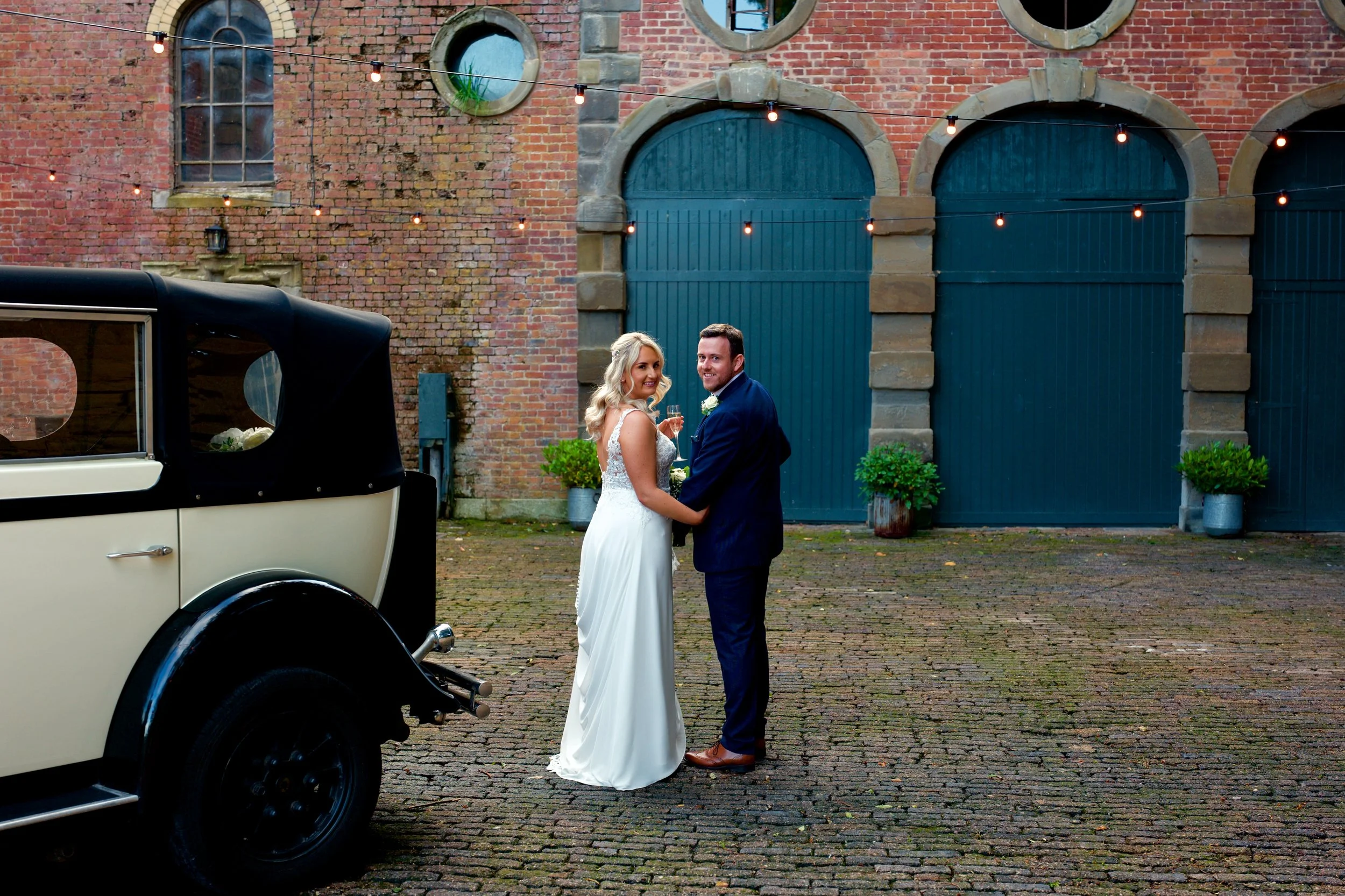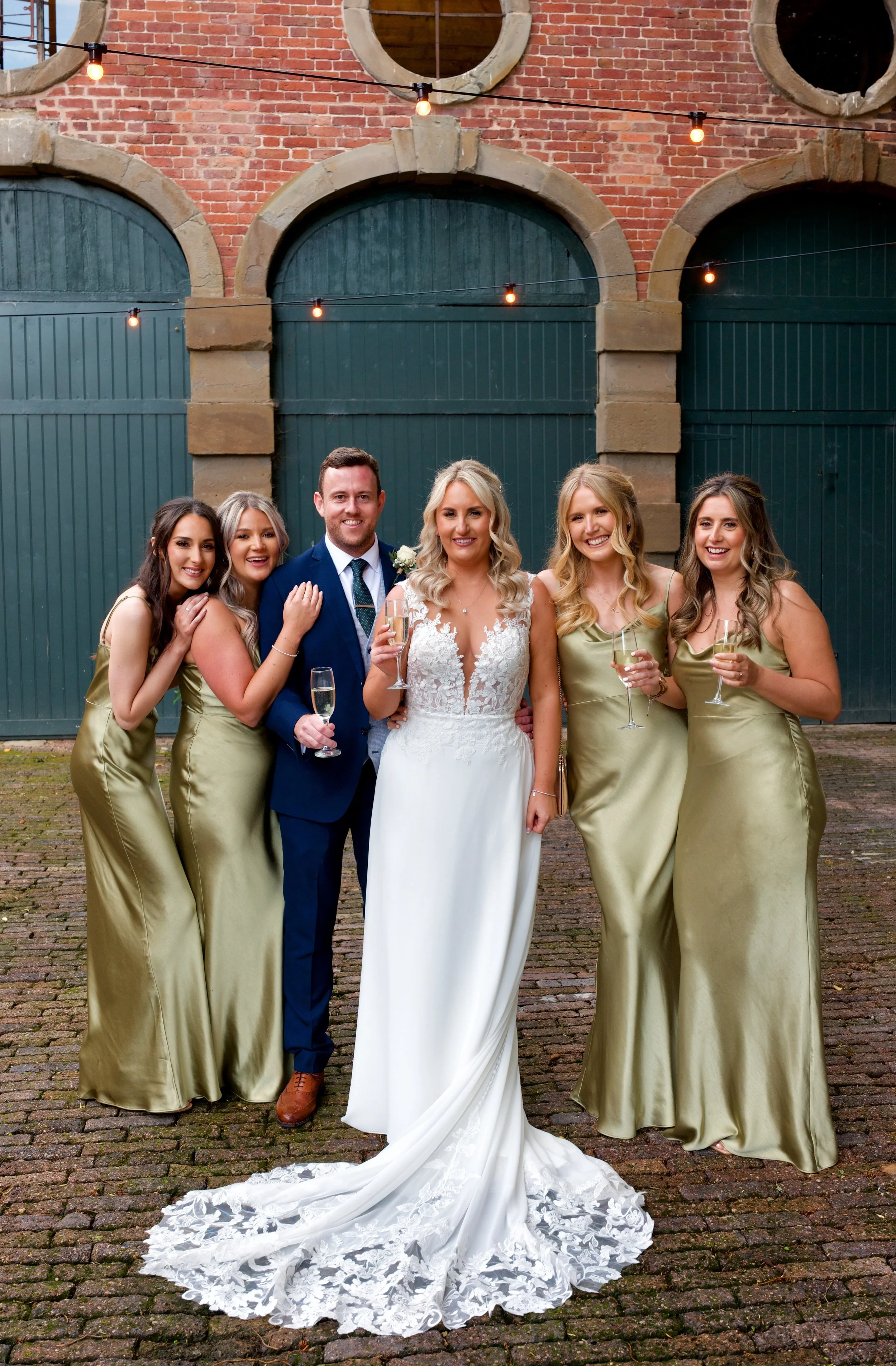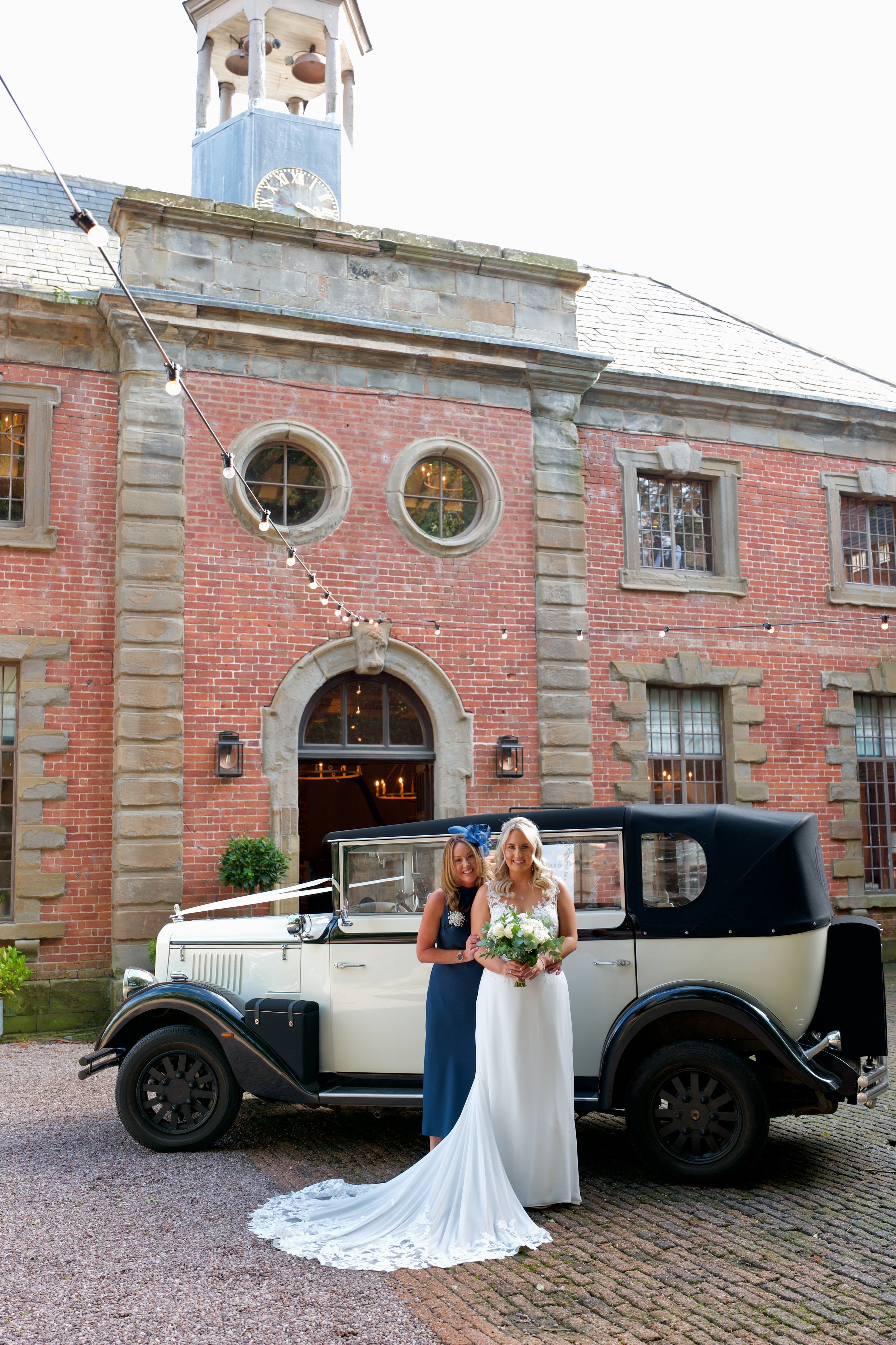 Shauna and Richard had a very romantic wedding at https://soughtonhall.co.uk/the-coach-house/ and married at twilight in the month of October. The Coach House sits in the grounds of https://soughtonhall.co.uk and is a grade 2 listed house built in 1870 and has been transformed into a luxury wedding and event venue. I absolutely love working there. The ceremony room was exquisite and was breathtakingly beautiful, decorated by Sharon https://www.instagram.com/coverstory_weddings_events/. After some relaxed Groom and attendants pictures I awaited the arrival of Shauna who travelled to the venue in a stunning vintage car, which was gleaming! Shauna was welcomed by her four very excited Bridesmaids!!! The theme of the wedding was relaxed, chic and stylish. Shauna looked astonishingly gorgeous as she was given away by her Mother and when the bridesmaids saw Shauna walking down the aisle they burst into tears with emotion. Shauna and Richard were surrounded by all their friends and family as they tied the knot in the Autumn sunshine streaming in through the windows, it was utterly magical. After the ceremony the couple enjoying sipping champagne and winding down in the gorgeous grounds mingling with their favourite people. This venue really is a picture perfect wedding setting offering so much in terms of interior and exterior backdrops. After a few posed pictures the couple then enjoyed a “reportage style of photography” whilst catching up with friends and family. After the wedding breakfast and laid back speeches it was straight into the cake cutting, first dance and party time! Shauna and Richard radiated pure happiness and beauty all day long.