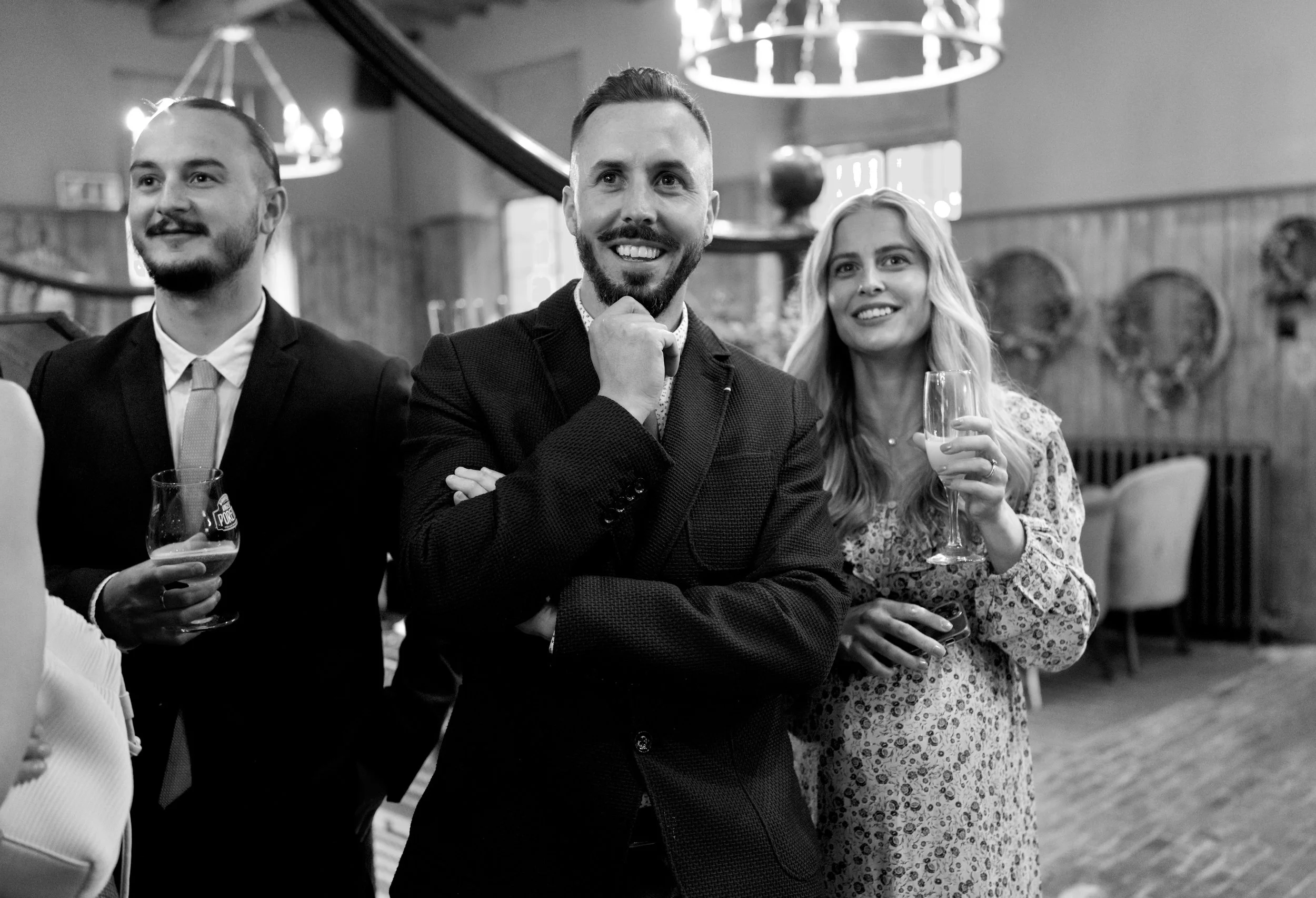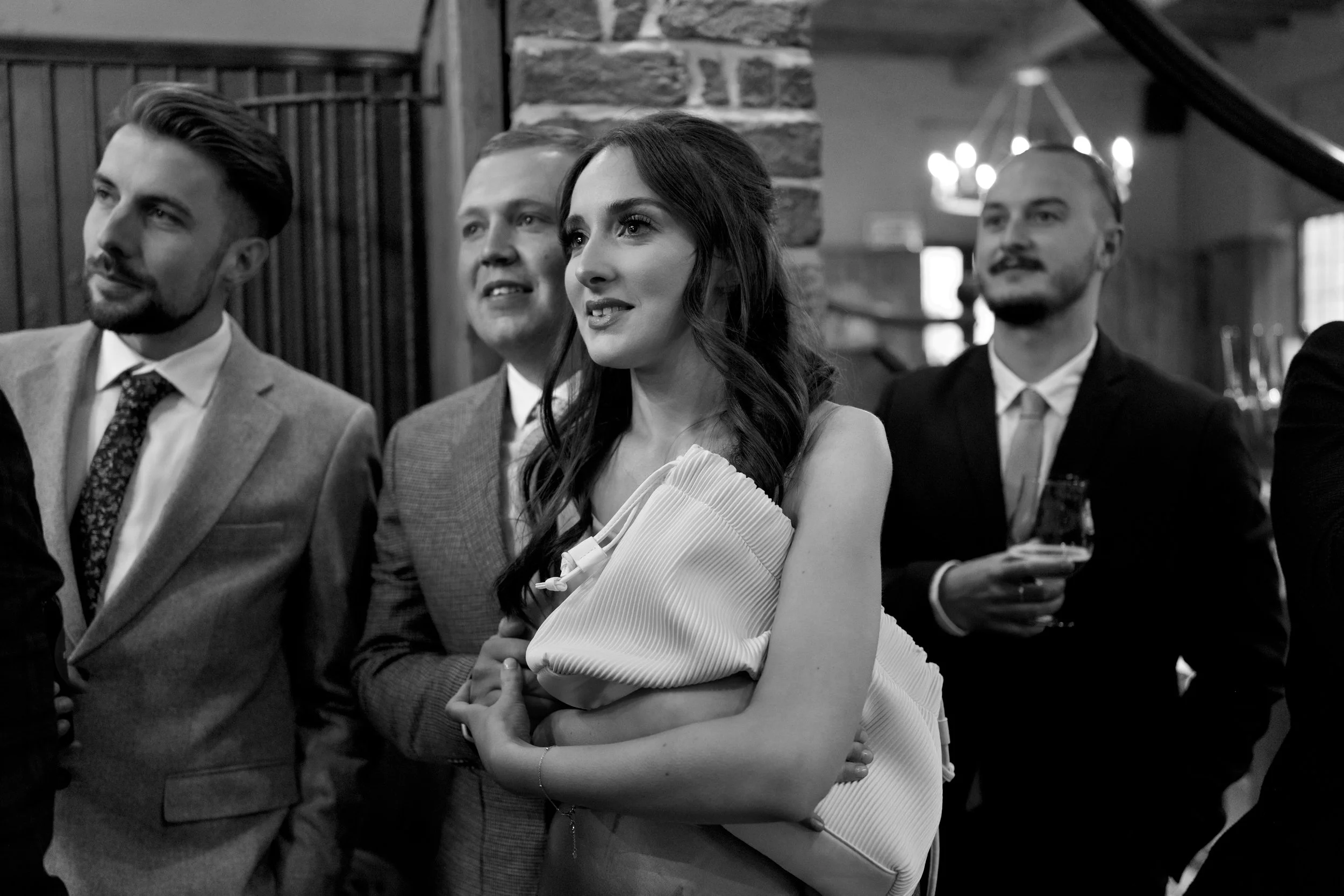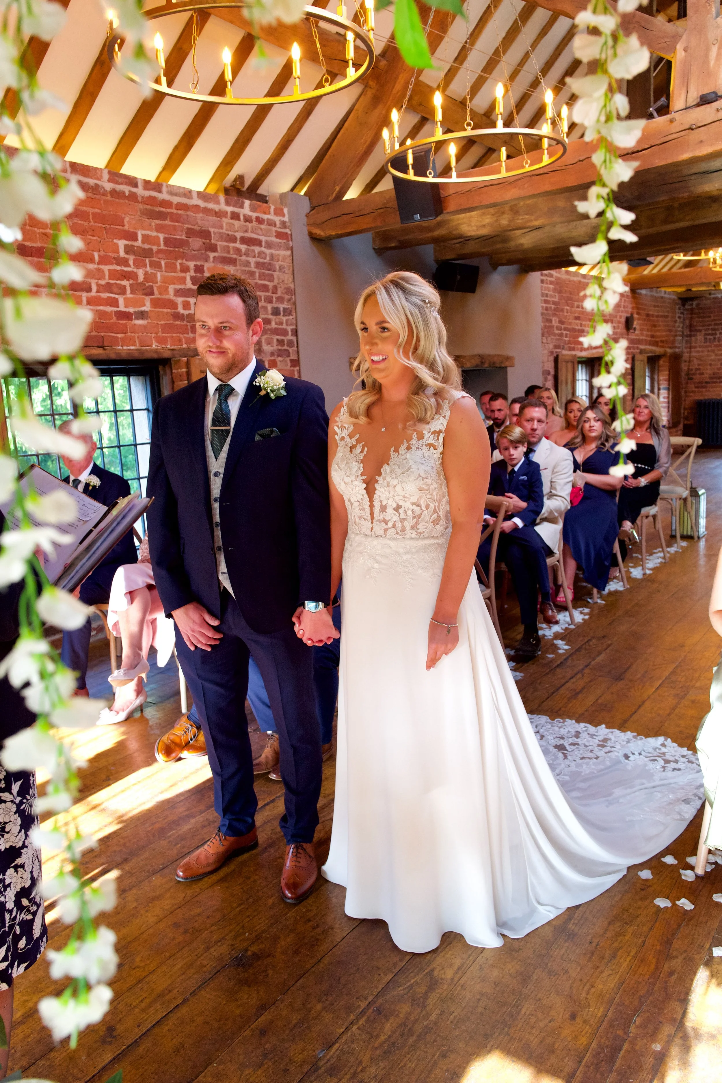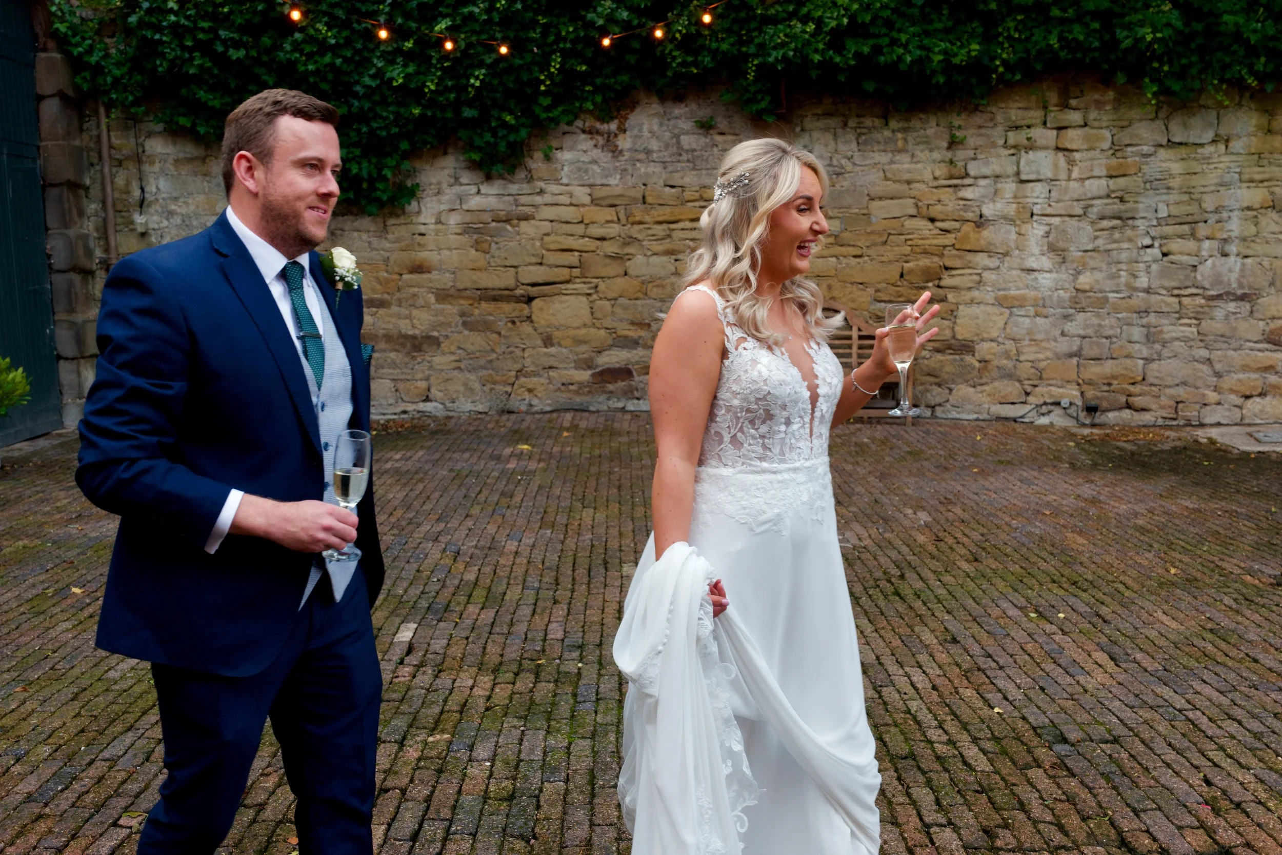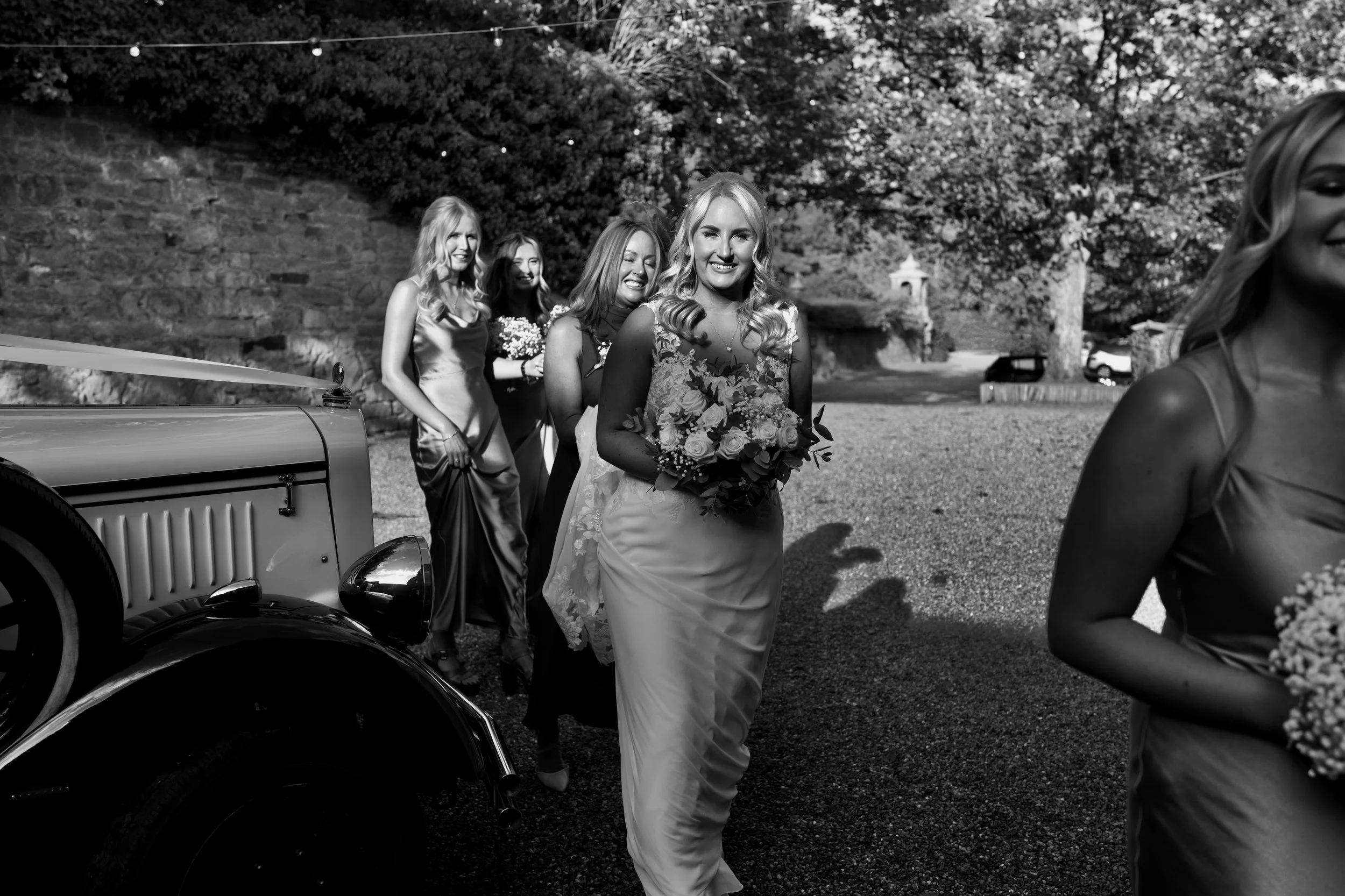 Shauna and Richard had a very romantic wedding at https://soughtonhall.co.uk/the-coach-house/ and married at twilight in the month of October. The Coach House sits in the grounds of https://soughtonhall.co.uk and is a grade 2 listed house built in 1870 and has been transformed into a luxury wedding and event venue. I absolutely love working there. The ceremony room was exquisite and was breathtakingly beautiful, decorated by Sharon https://www.instagram.com/coverstory_weddings_events/. After some relaxed Groom and attendants pictures I awaited the arrival of Shauna who travelled to the venue in a stunning vintage car, which was gleaming! Shauna was welcomed by her four very excited Bridesmaids!!! The theme of the wedding was relaxed, chic and stylish. Shauna looked astonishingly gorgeous as she was given away by her Mother and when the bridesmaids saw Shauna walking down the aisle they burst into tears with emotion. Shauna and Richard were surrounded by all their friends and family as they tied the knot in the Autumn sunshine streaming in through the windows, it was utterly magical. After the ceremony the couple enjoying sipping champagne and winding down in the gorgeous grounds mingling with their favourite people. This venue really is a picture perfect wedding setting offering so much in terms of interior and exterior backdrops. After a few posed pictures the couple then enjoyed a “reportage style of photography” whilst catching up with friends and family. After the wedding breakfast and laid back speeches it was straight into the cake cutting, first dance and party time! Shauna and Richard radiated pure happiness and beauty all day long.